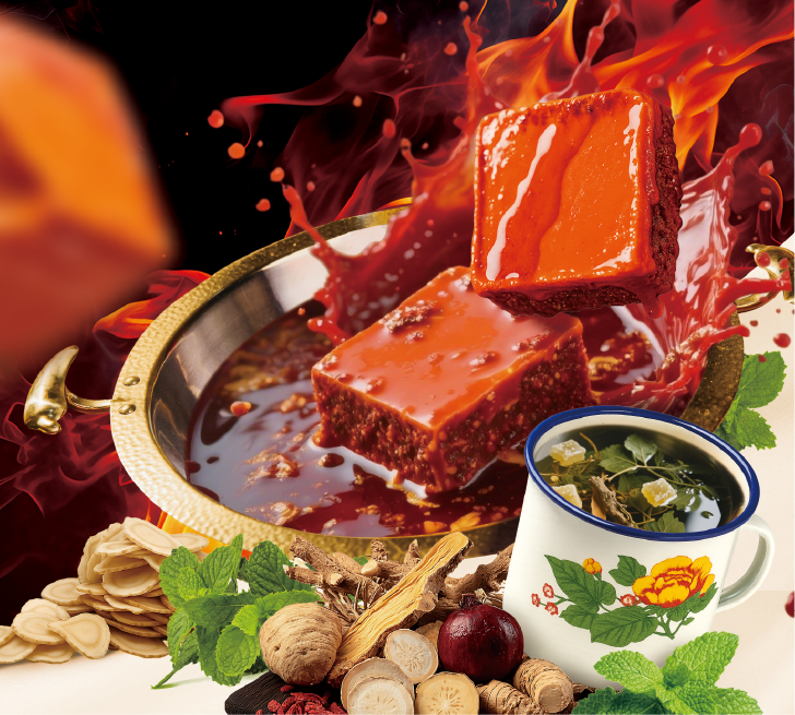 intense. That’s why we pair our hot pot with Traditional Sichuan Cooling Tea – a refreshing herbal drink that helps balance the body and enhances the dining experience.